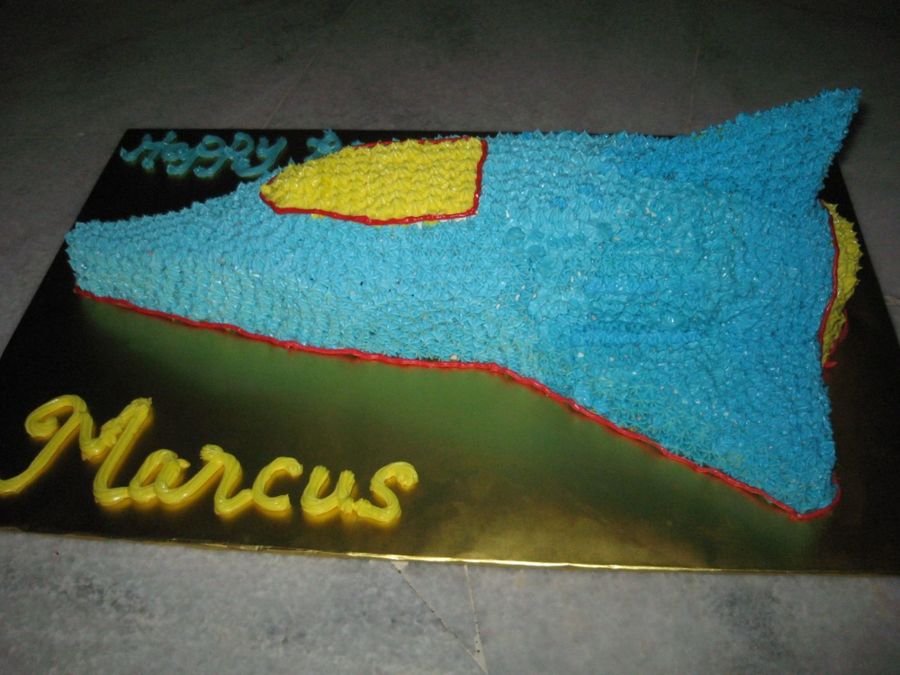 Yes, I bake the cake in two oblong pans. Then carved and attached with buttercream. The top triangle piece is just a card board covered with icing. :wink: