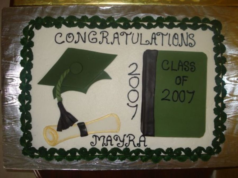 frindmi on 30 May 2007 , 2:14pm Very nice job. Are the graduation hat, book and diploma made out of fondant or are they painted on top of the cake? It looks really neat.