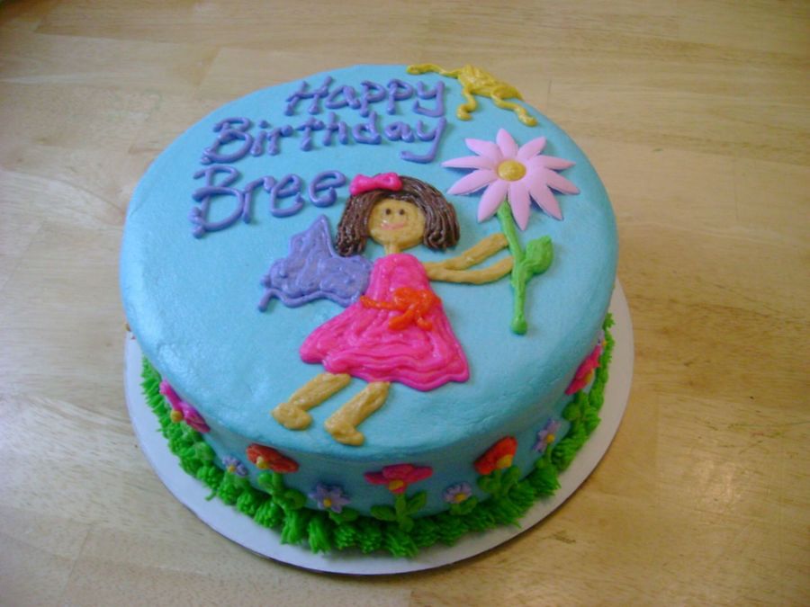 8" chocolate cake with mint chocolate chip filling and butterceam icing. Small purple flowers and pink daisy all MMF.