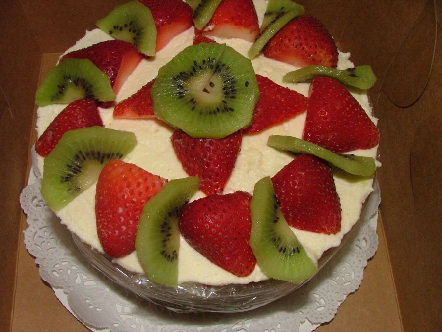 with cream cheese mousse topped with fresh fruit