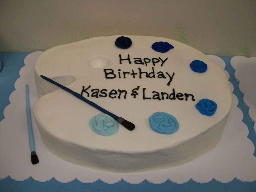 Buttercream with fondant brushes. For a blue paint birthday party at a childrens art studio.