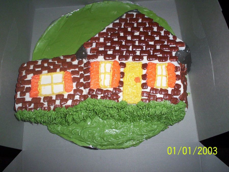 I made this for my sister's housewarming. I thought I would try to use a different recipe for this pan besides a pound cake recipe. Well it didn't work. When I stood the house up, it began to fall slowly b/c my cake was too moist. So I decided to lay it down before it completely crumbled. The cake was a hit anyway, there wasn't a crumb left.