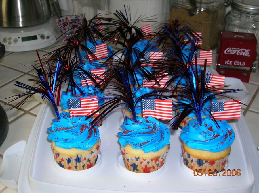 MADE THESE FOR A FAMILY BBQ MEMORIAL WEEKEND!!! ALL THE KIDS LOVED THE BLUE FROSTING. THEIR FACES WERE COVERED IN IT!!!!!
