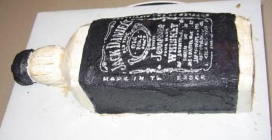 This was a birthday cake for my sister who loves her JD. The cake is hand cut, and iced in buttercream. I printed a real JD label in mirror image and traced it to make the label.