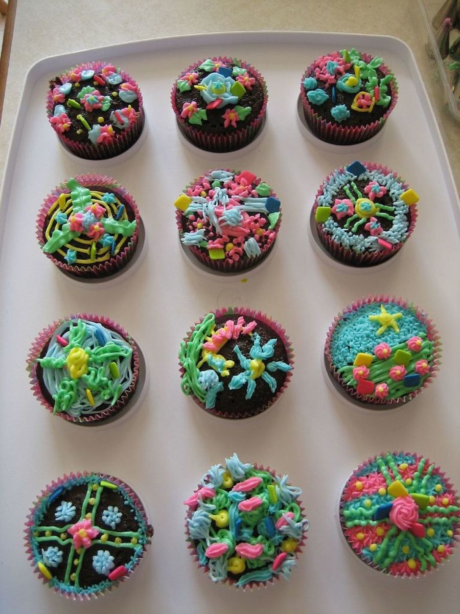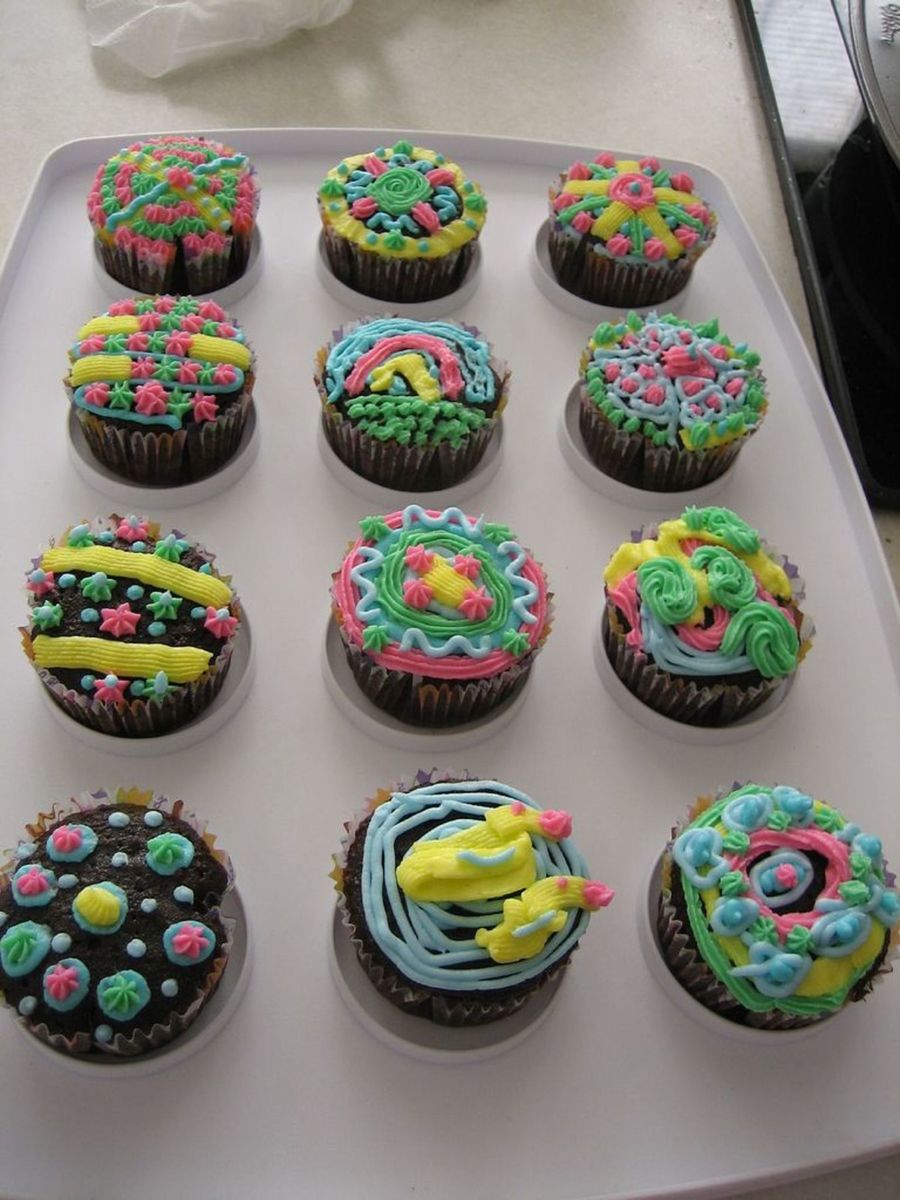 Kelsey decorated most of these cupcakes. This is the 2nd of 12 cupcakes that she decorated. We will be bringing these cupcakes in tomorrow (5/31) so that she can share with her classmates and teacher her pre-bday cupcake. :) She's a July bday girl and school lets out in June.
