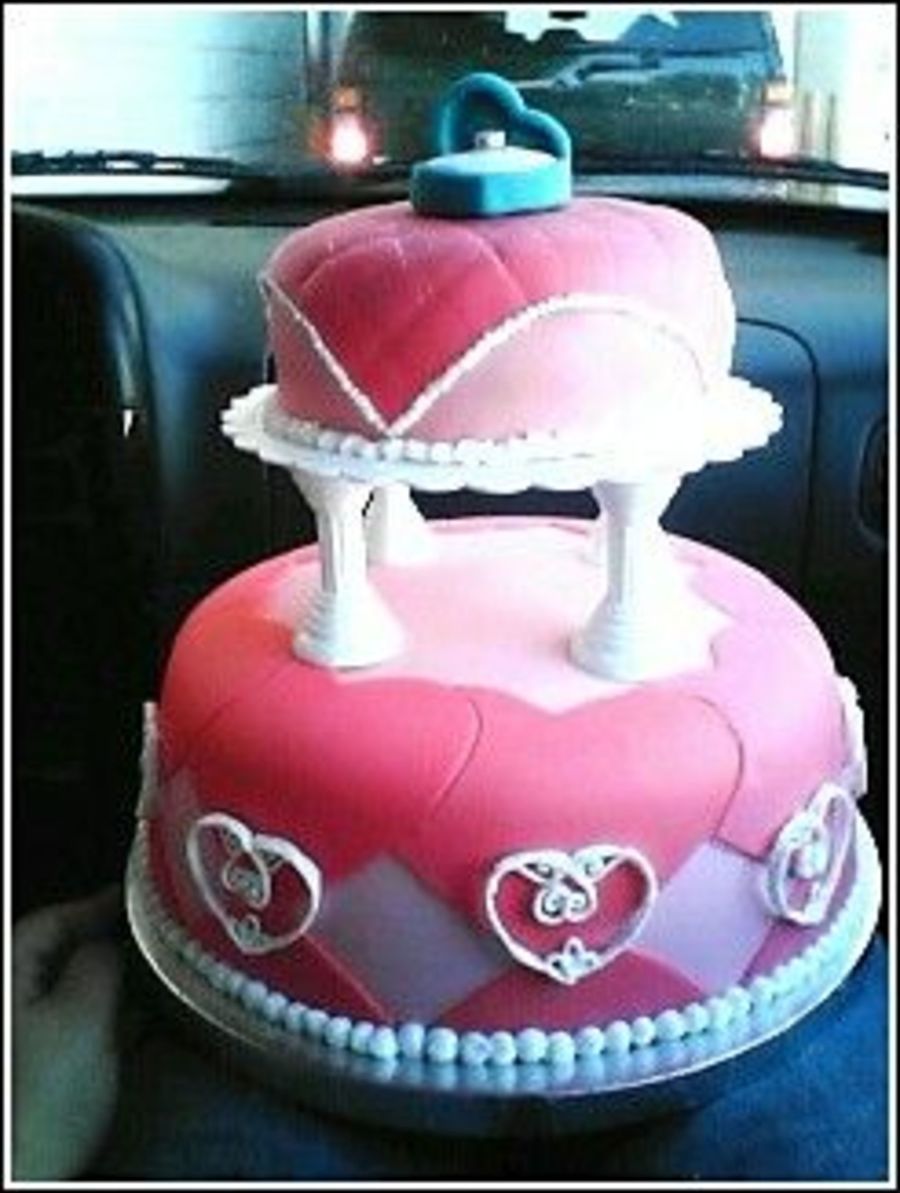 Wow! I love how you used the pink hearts on the bottom. Truly an impressive cake!