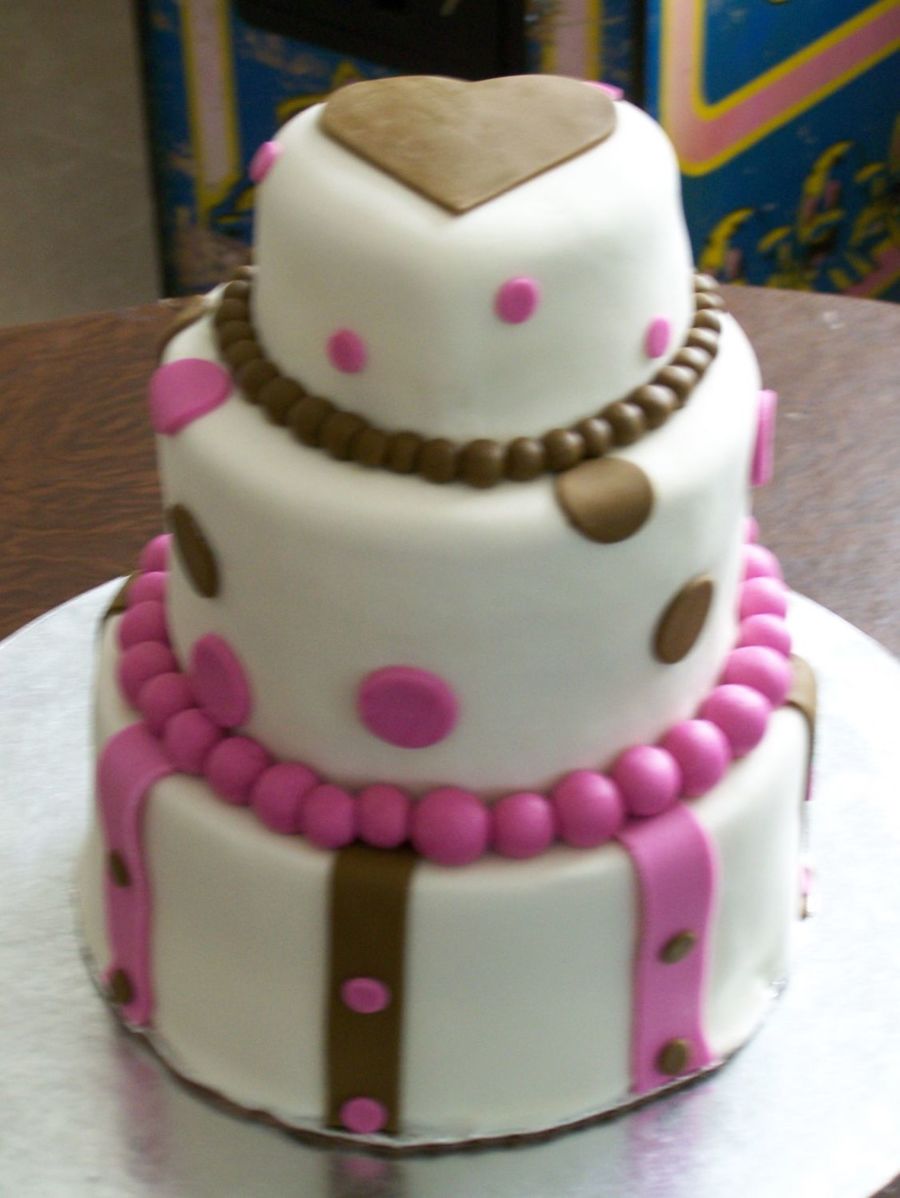 Practice with mmf. Cake is yellow with ganache filling. Top layer a is a small heart. I don't have any small cutters for the fondant so I used what I had. It was a lot of fun. I wanted to make each layer a different color but it is rough on the hands kneading this stuff!
