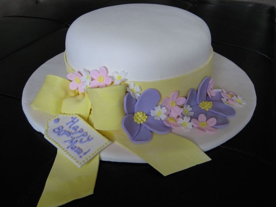 8" round WASC with lemon curd filling covered in fondant with fondant flowers and sugarpaste bow.