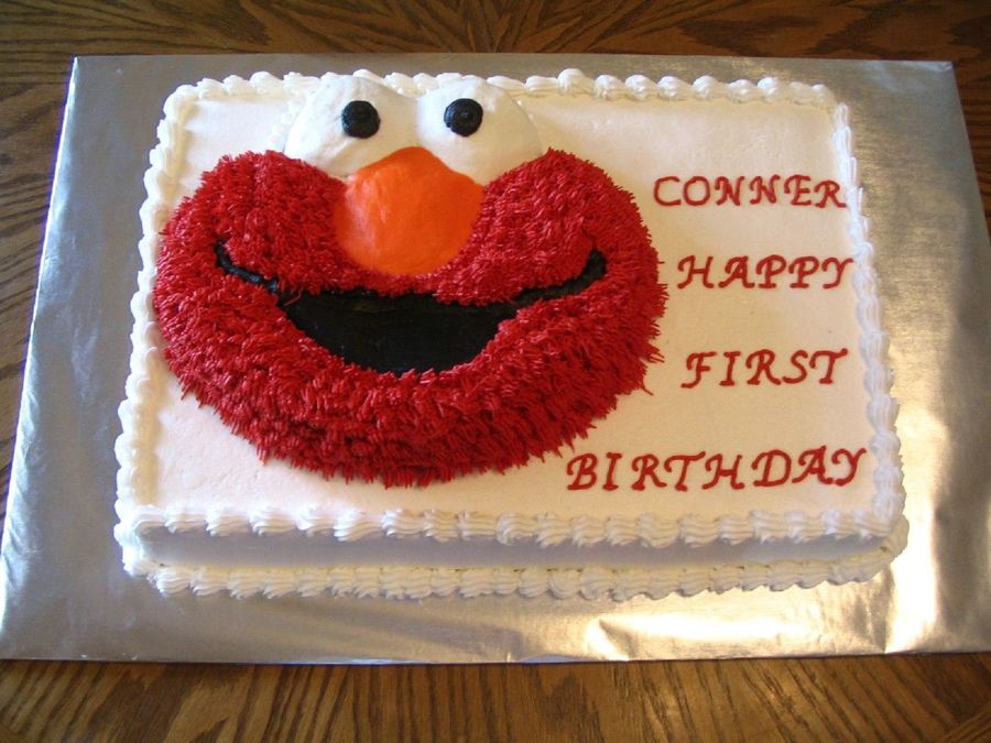 12x18 white cake with buttercream icing. Elmo is chocolate cake with buttercream icing. This was the first "large" cake and the first stacked caked I've done.