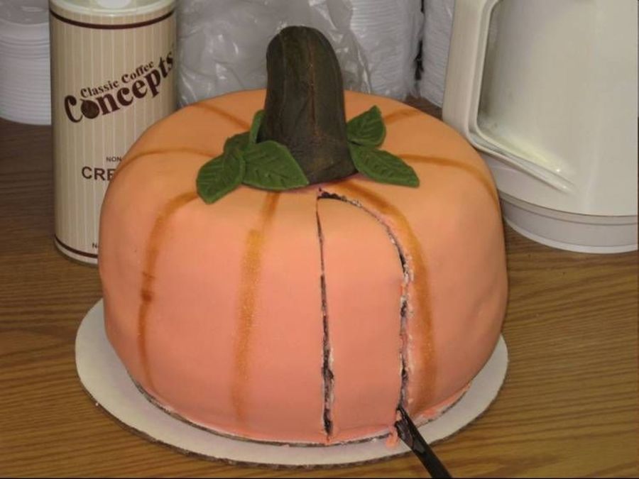 It is actually two bundt cakes, I put one down upside down and the other one on top. I was hoping the grooves of the bundt shape would show through more but my fondant was too thick.