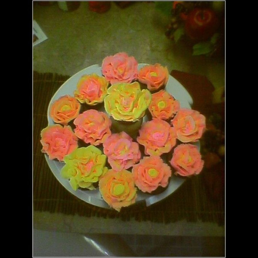 yellow cake w/ buttercream frosting after learning how to do roses in Wilton I and after being inspired by cc, I decided to try roses directly onto a cupcake, so here it is!