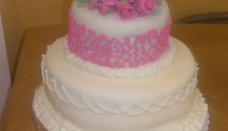 Class III gift cake. I should've rolled the fondant a little thinner. It wasn't as difficult as I thought it would be, but I need a lot more practice.