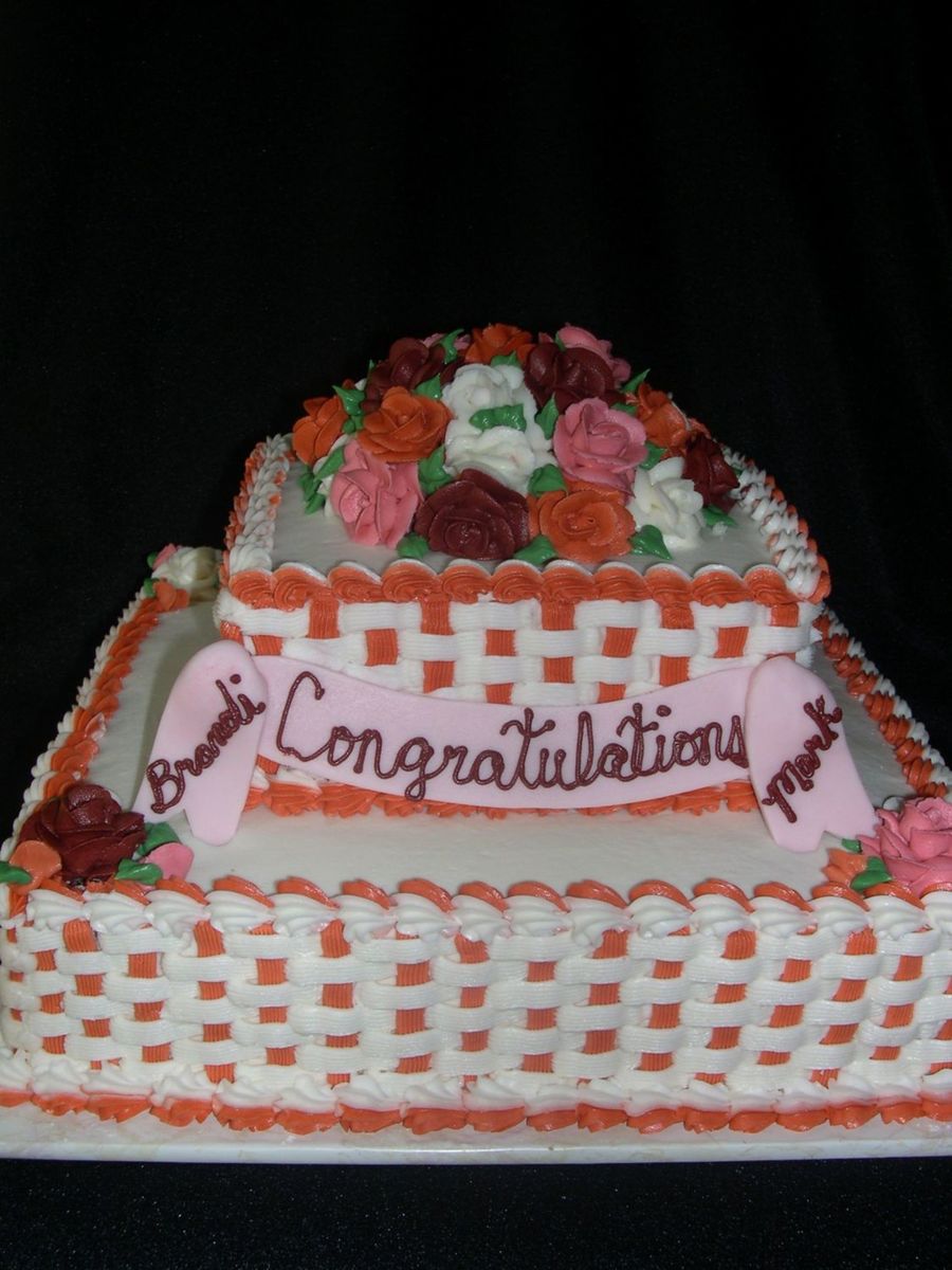 Bottom is Carrot, top is Yellow, all buttercream, gumpaste plaque.