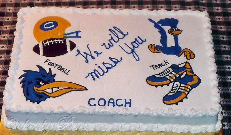 Made for local high school coach's retirement. All BC - NO FBCT - never heard of it when made this cake, just outlined the objects and filled in with BC. Cake was chocolate.