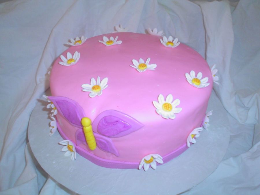 White cake with guava and lime filling - fondant with fondant daisies and butterfly. Still working on getting the hang of fondant!!
