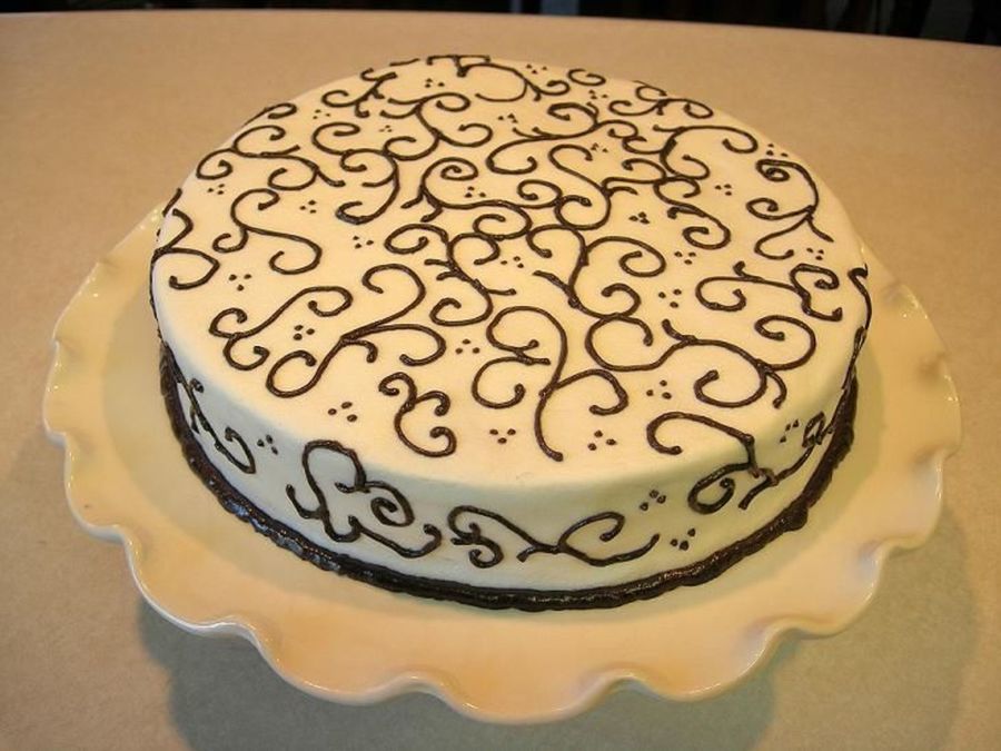 This was my first time doing scroll work. The cake is strawberry with buttercream icing.