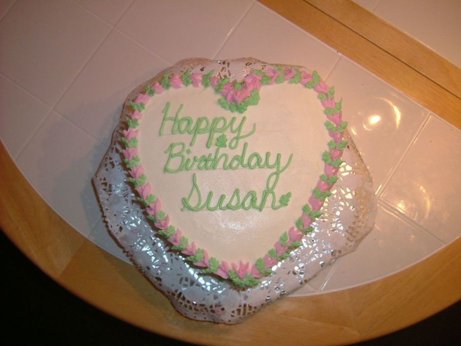 Made this for my cousin's birthday. Heart shpae chocolate and yellow cake filled with chocolate pudding. Had fun doing this. All buttercream and got the idea from a wilton book. She almost cried when she seen it, I took that as a good thing?:)