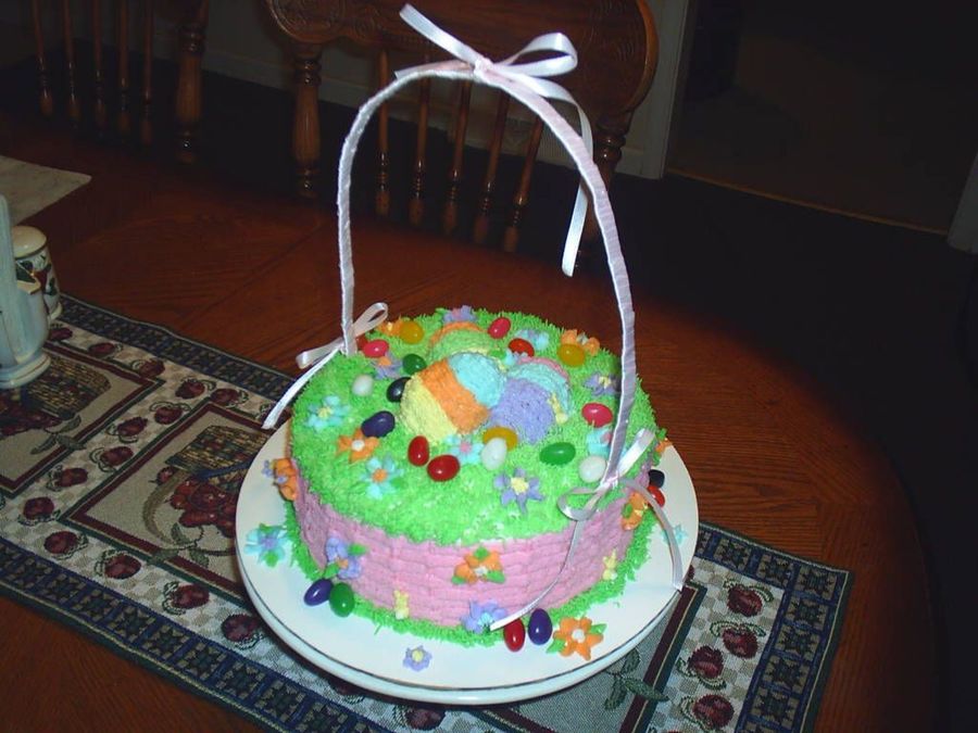 1st easter cake. The eggs are choc. marshmallow eggs covered in bc icing.