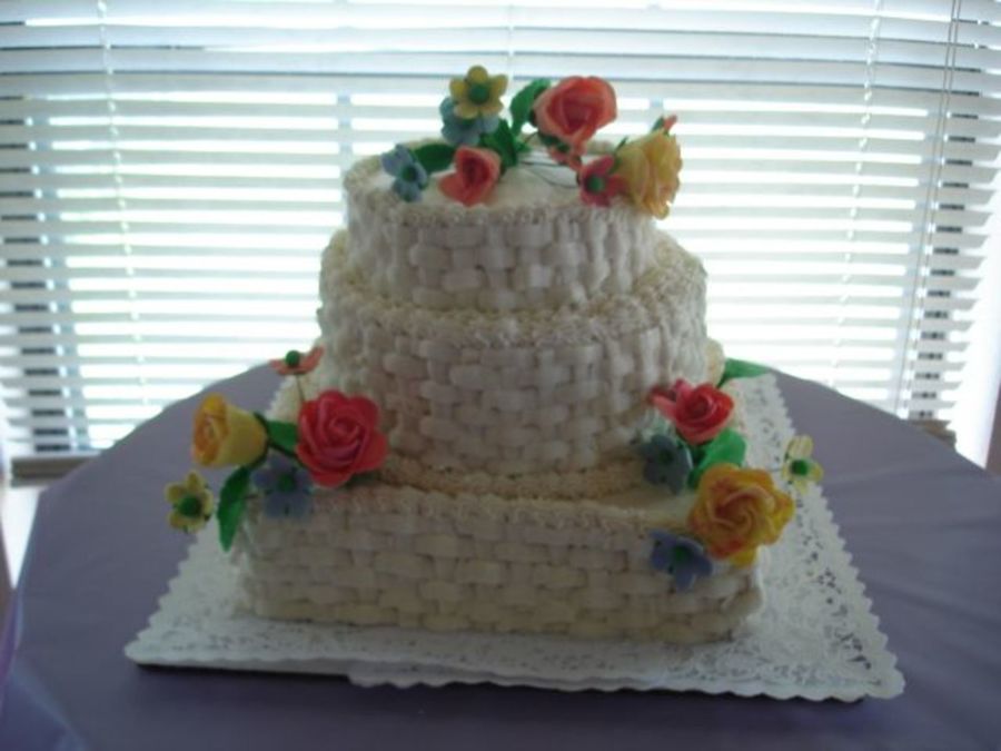 1st time with gumpaste or making a stacked cake. Vanilla cake with alternating Strawberry & Blueberry Filling, High Humidity Icing & Gumpaste Flowers.