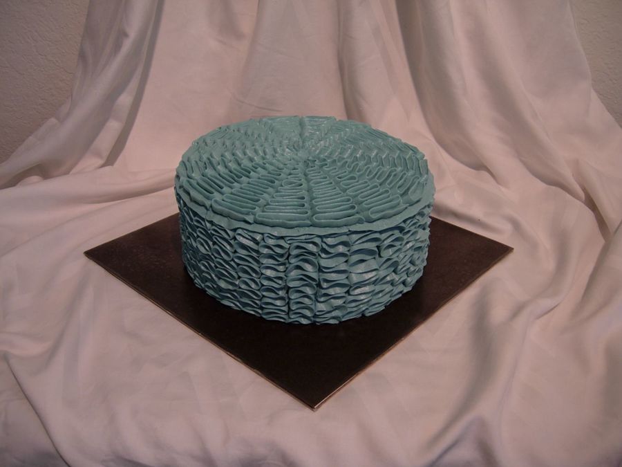 Thank you all! It's done using a #104 rose tip with the wide end touching the cake and just moved in a zigzag motion up the side as the icing is piped.
