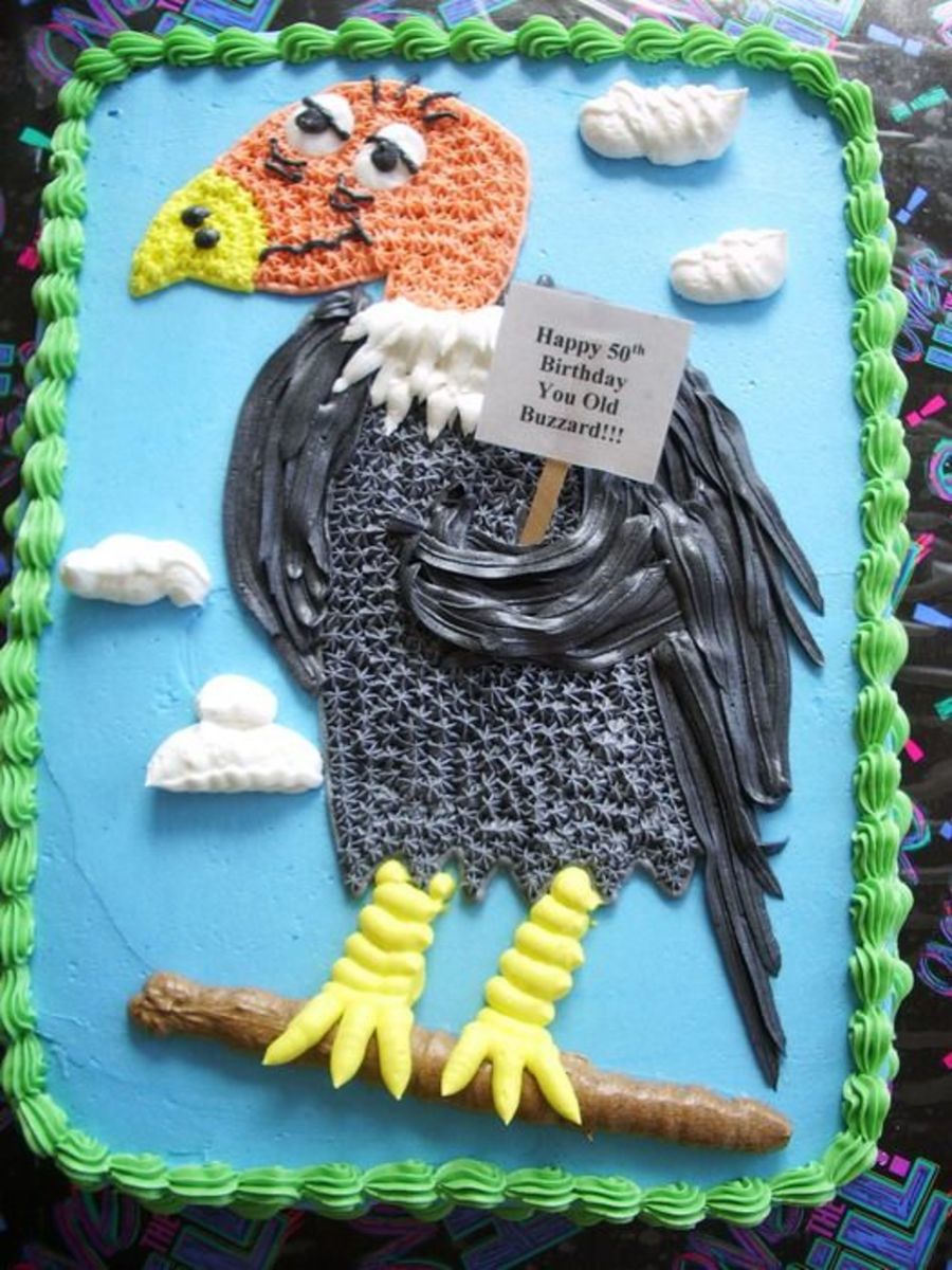 White Butter Cake filled with french custard (both from the WBH book) and iced in vanilla BC. It's an inside joke in the family that my cousin's hubby isn't hen pecked but buzzard bit so the cake was very appropriate! Everyone got a kick out of it.