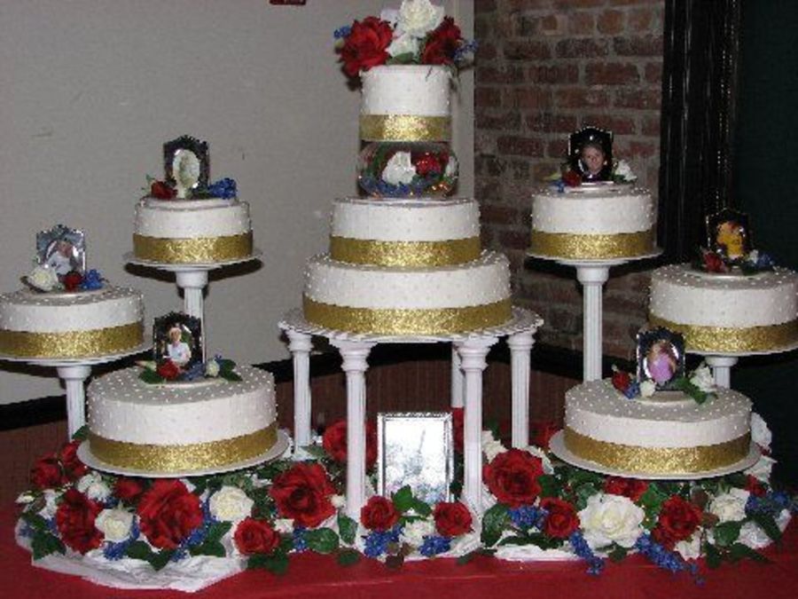 Beautiful display!!! Your cakes are perfect - the dots are so uniform!!! I love the gold ribbon, the flowers, and everything about this presentation!!! Just awesome!!!