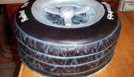 this was my first "play" with fondant ... i thought it turned out pretty good , my five year old cut out the polka dots , we had lots of fun making this cake ....