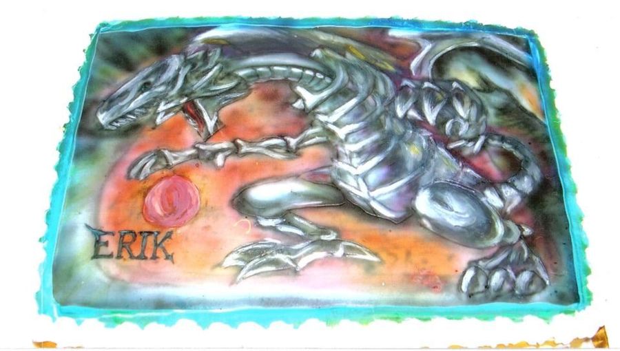 My nephew wanted a blue eyed dragon for his birthday cake so i hand painted and airbrushed on fondant.