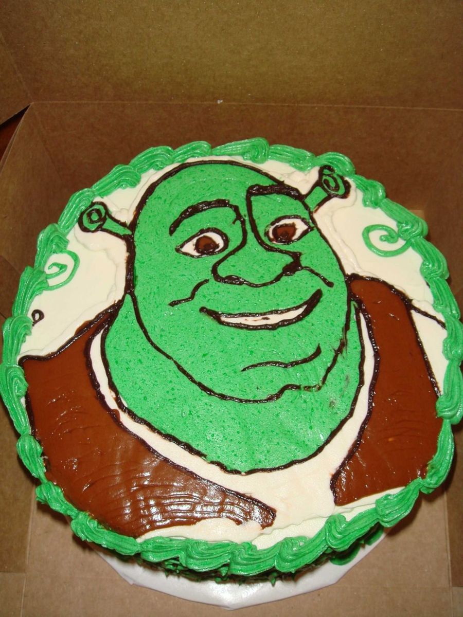 My first FBCT. Was fun to do. She made this order 3 days b4 and I had no clue about Shrek and lucky for the internet. Chocolate amaretto cake w/ chocolate buttercream as filling. Iced in whipped cream icing.