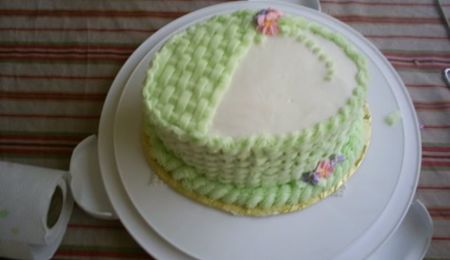 Made for an 87 year old man and a 74 year old woman home wedding. Royal icing roses dusted with silver luster dust. Royal icing apple blossoms. All iced in bc. After the wedding the coworker who purchased this told me that neither one had a wedding cake for their first weddings. I felt very specail to have made this for them.