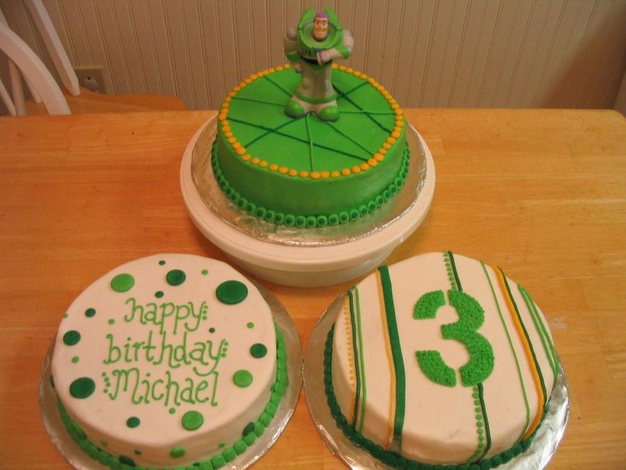 This customer asked for a green theme, and a Buzz Lightyear theme. All are done in buttercream icing, all 8" rounds.