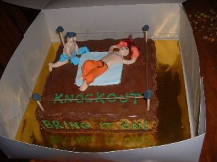 this was for one of the instructors at my kickboxing class. chocolate cake, chocolate butter icing and fondant figures.
