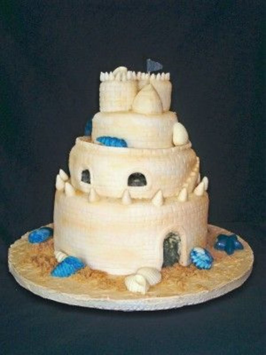 Made of Fondant. White choc. shells, Airbrushed to look sandy.
