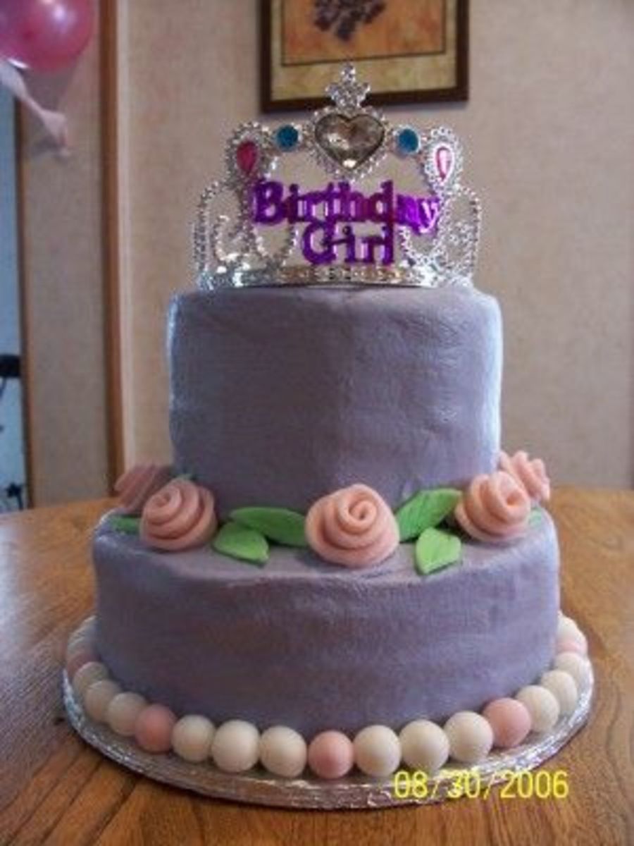 Princess cake for my daughter's 5th birthday today. Chocolate fudge/French Vanilla iced in buttercream with fondant accents. My first real go-around with fondant and I LOVE it. It's so much more fun! Icing isn't very smooth because the birthday girl insisted on bumping my elbow every five seconds so I just let it go. LOL Overall, I'm proud of it.