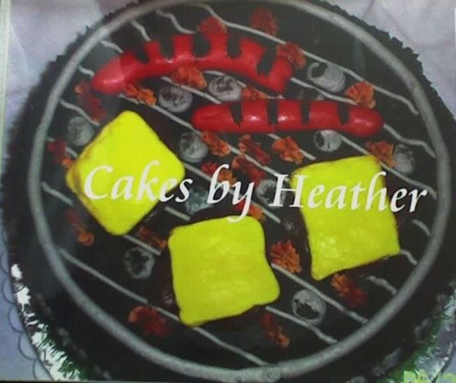 So much fun for the man in your life that loves to grill!! I think I got this idea from another site...not sure :) 2-layer (torted) round cake iced in buttercream. THe hamburgers and hot dogs were made from candy clay. All details were also made from buttercream.