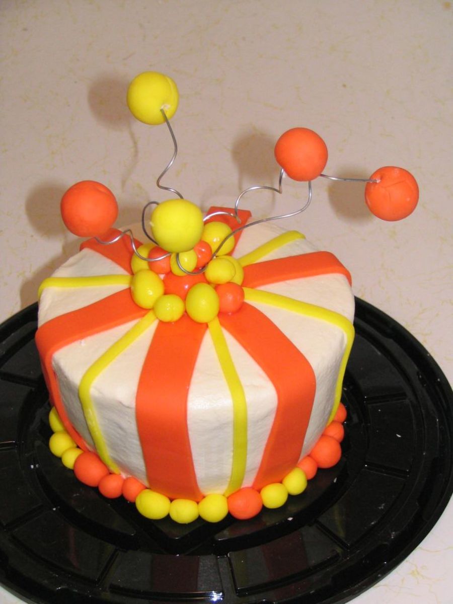 My first attempt at a whimsy cake...and my first time with fondant. It's 2 6" cakes, carved to taper, BC with Fondant accents. It went to work with DH and got rave reviews!