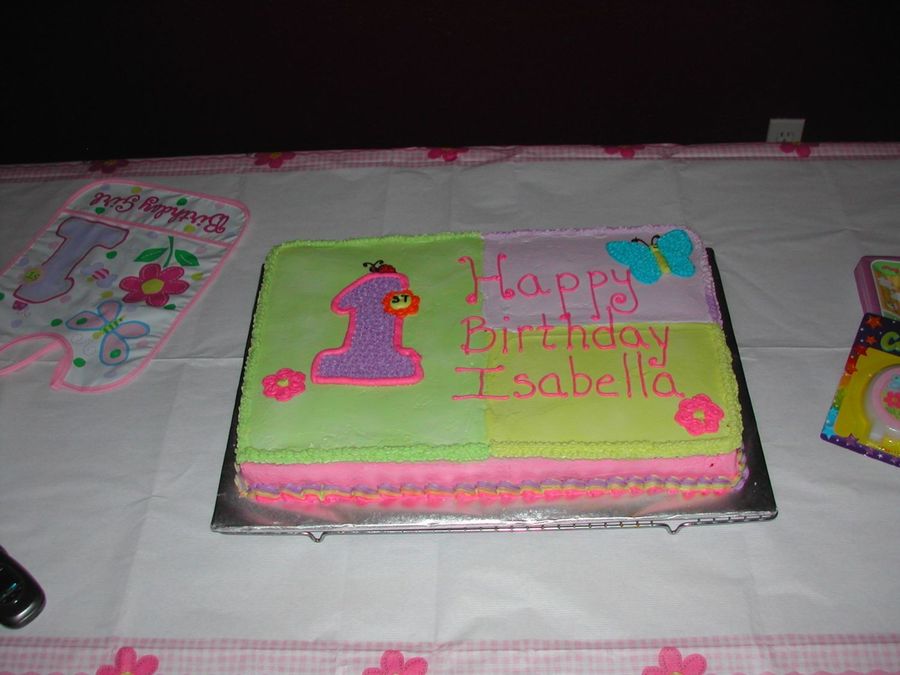 I made this cake for my daughter's first birthday. It's all buttercream icing.