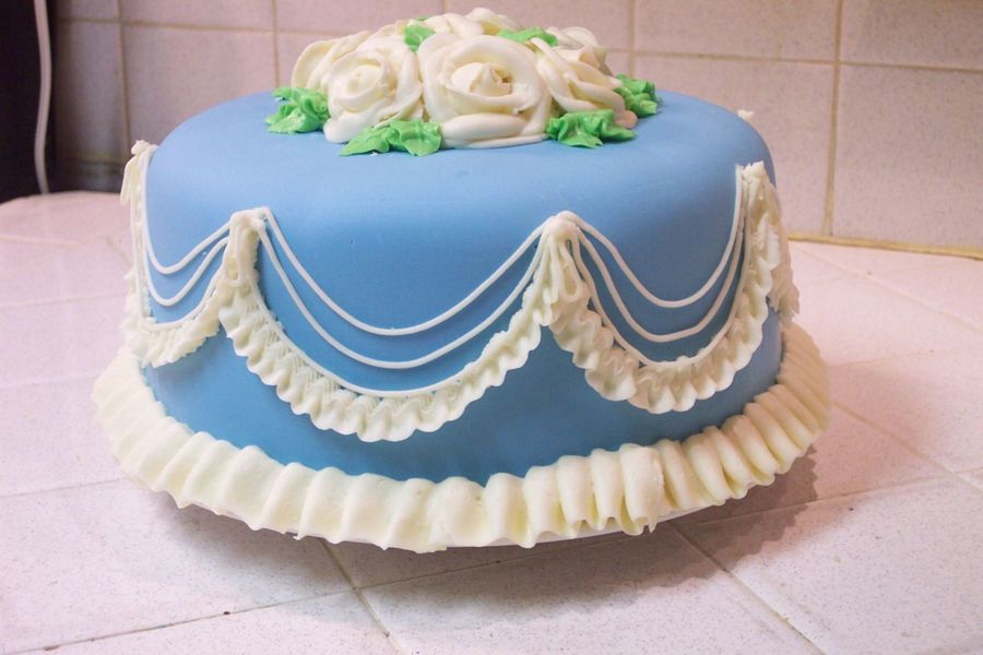 Beautiful cake - neat, clean lines - reminds me of Wedgewood. Good luck