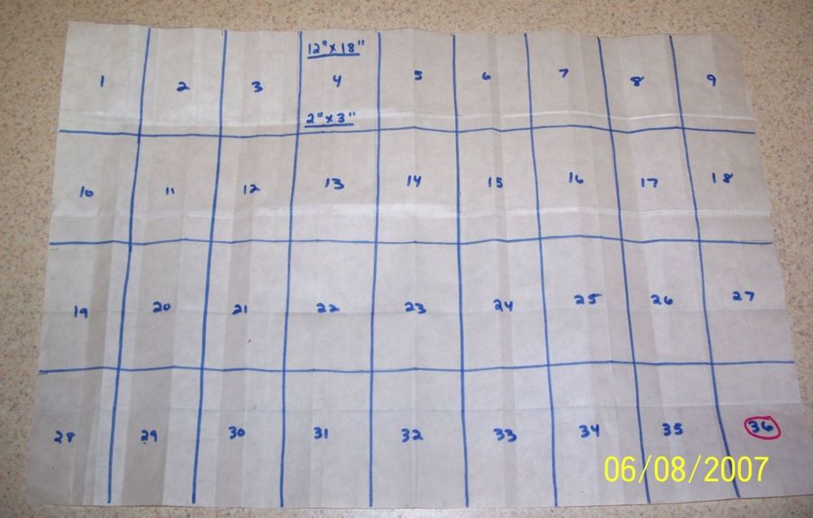 Slicing guide for 36 slices. Slice 4 across and 9 down.