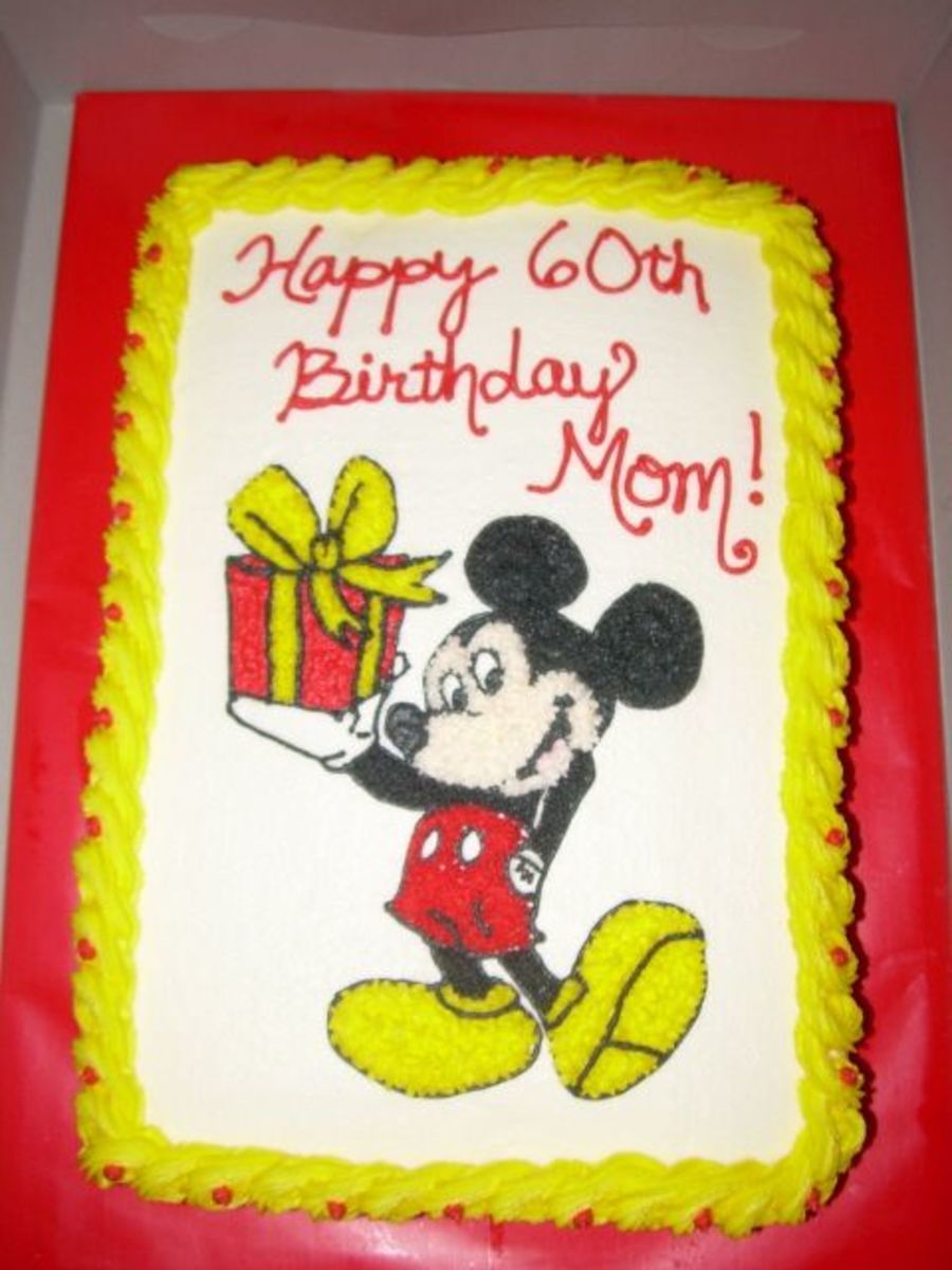 This was for a long-time Mickey lover! 2 layer 9x13 cake, one layer dark chocolate fudge, one layer strawberry, with buttercream filling and icing. Thanks for looking!