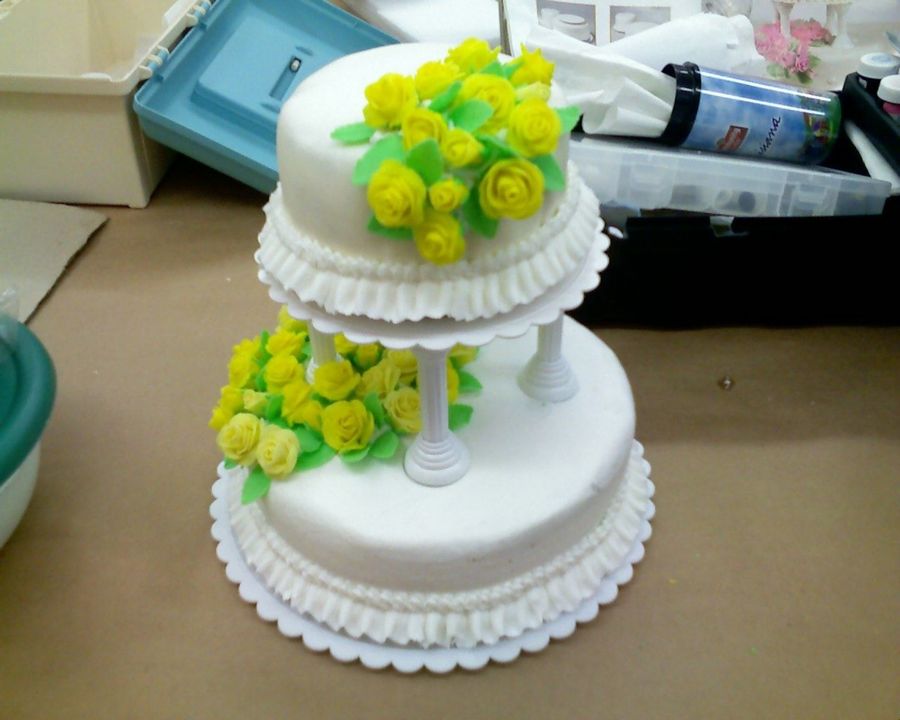 I tried out the MMF for the first time on the top tier. I found out I need a lot of work with that. The bottom cake is iced in buttercream. I was fairly pleased with how this cake turned out. Thanks for looking. (Took picture with my camera phone, so it looks a little grainy.)
