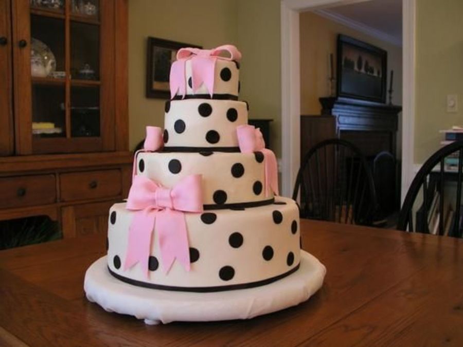 Your bows are amazing!!! What a gorgeous cake! The dots are perfectly placed, too! Fantastic!!