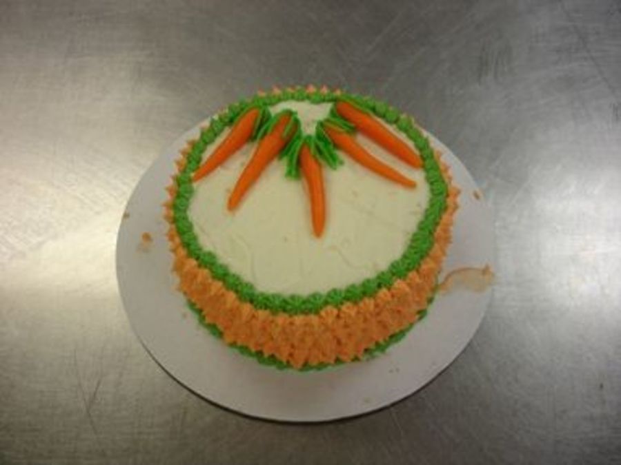 Carrot Cake decorated with Buttercream and Marzipan Carrots.