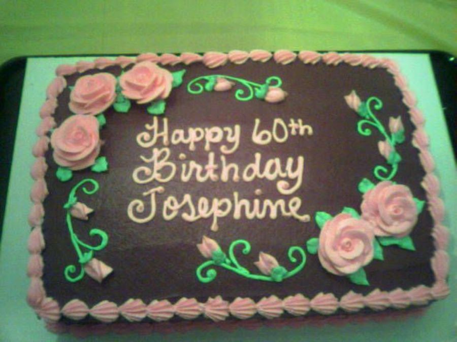 This was a joint effort between me and my sister. She baked and frosted the cake, and I decorated it. I think the pink and green on top of chocolate frosting is an interesting combination! I am VERY pleased with how this cake turned out! I love the floral sprays as well as my handwriting. Sorry for the grainy picture it was taken on my cell phone!