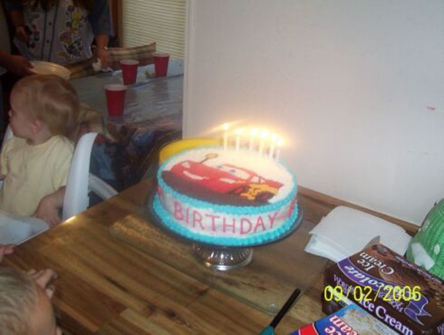 Second shot of cake with candles. "Happy Birthday Brandon" was piped around the side of the cake which I had frosted with a "color swirl" effect. (Something I just thought looked cool LOL)