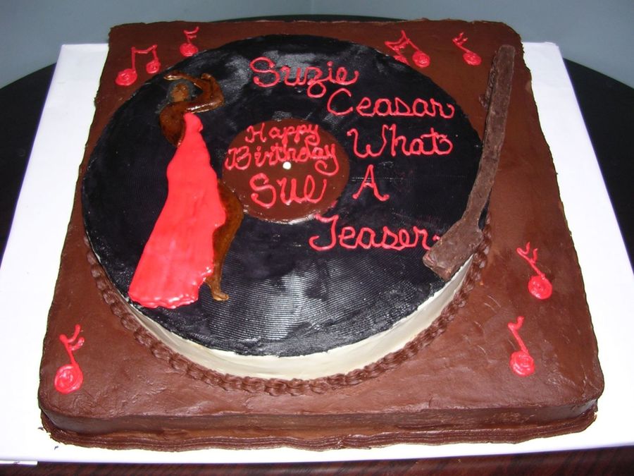 I did this cake for a co-worker's friend. It was her 40th b-day and her friends always sang that song to her. The cake was done in buttercream. The Woman was my first attempt using color flow ( a challenge for me to work with) the arm is molded from chocolate and wafer cookies. This was really fun to create.