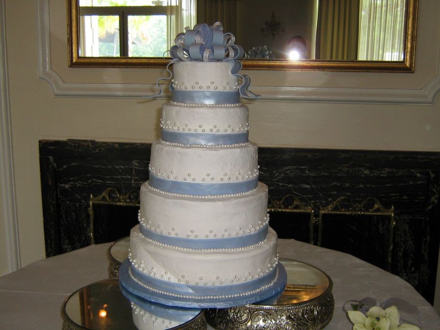 I like how you did the pearl pattern above the ribbon, and nice set up with the cake sitting on 3 stands. Beautiful Work!