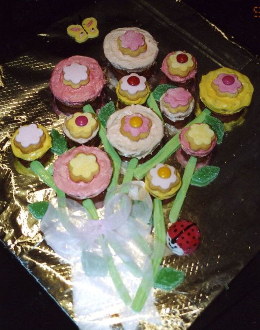 This was the first cake for my little girl - i said i'd never to the muffin type cake again after my little boy's first attempt, but i had to do the pink girlie flower cake and thought this style looked good when i saw a picture, i altered it of course.