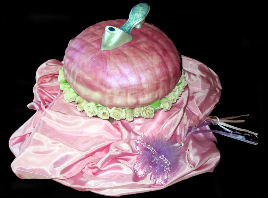 I made this cake for my daughter's third birthday. I had to carve out the pillow from a ten inch round (my 10 inch square walked off someplace). The shoe design is from Socake! The cake itself is dark fudge with a cream cheese/chocolate filling and a strawberry flavored BC frosting.
