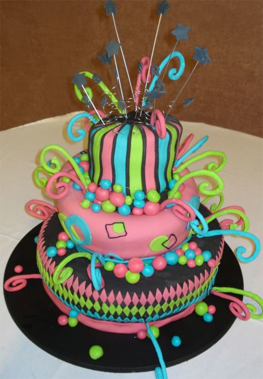 This one was a grad cake for a former student....lots of fun to do, but realized that the design was really crazy (she designed it) and quite bright. My husband calls it a migraine headache in cake form!